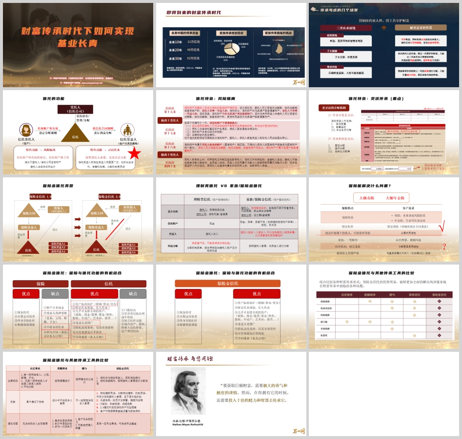 罗斯柴尔德家族的箴言深刻揭示了财富传承的本质:“要获取巨额财富,需要极大的勇气和极度的谨慎。然而,在你拥有它的时候,还需要投入十倍的精力和智慧去传承它。” 在财富传承时代,这份“精力和智慧”就体现在提前规划、专业布局和工具运用上。