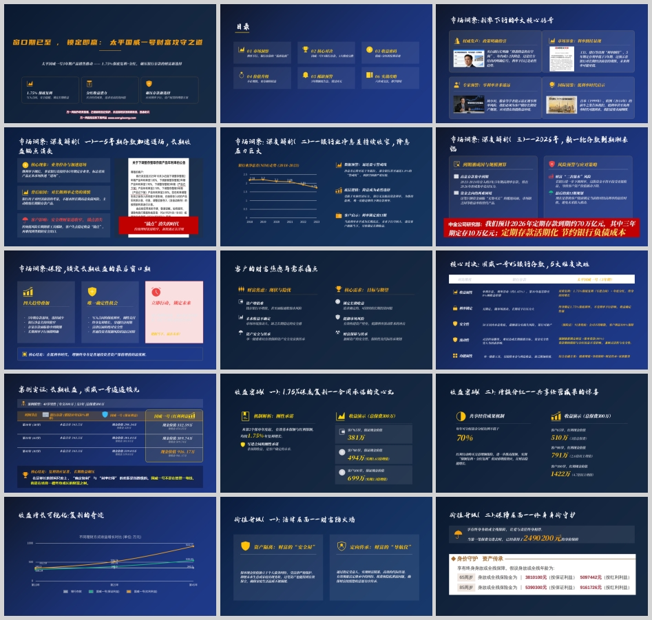 太平国威一号的推出,既是利率下行时代的“刚需解决方案”,更是财富管理行业的“业绩利器”。它以“保底复利+分红”的确定性对抗市场波动,以法律保障与高端服务构筑财富护城河,更以稀缺性激发客户行动。对投资者而言,这是锁定长期收益的“最后窗口”;对从业者而言,这是冲刺业绩的“黄金抓手”。