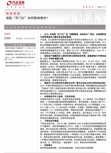 2026年伊始,中国资本市场呈现出鲜明的“股债分化”格局——A股沪指13连阳并突破十年新高,站上4100点,而债市则经历开年“三连跌”,长端利率快速上行,30年期国债收益率一度冲破2.33%,国债期货TL合约创近一年新低。在权益市场火热吸引资金的同时,保险业的“开门红”正在悄然为债市注入新的变量。方正证券研究所最新发布的《保险“开门红”如何影响债市?》报告指出,2026年保险开门红呈现“规模稳增、结构优化”的特征,负债端转型与银保渠道发力奠定了充裕的资金供给基础,资产端聚焦长久期利率债与高等级信用债的配置逻辑,将对全年债市形成重要支撑。但同时,开门红带来的资金效应也存在边界,需警惕股市分流与利率波动对债市支撑效果的扰动。