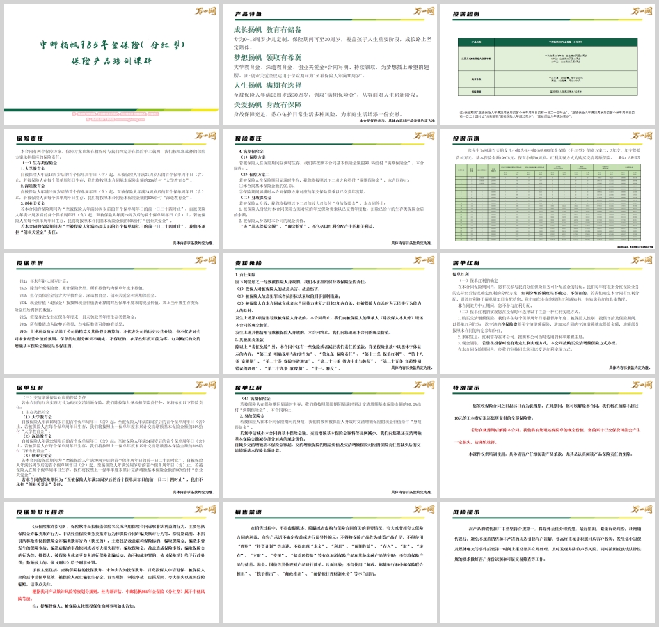 禁止用语:明确禁止使用“理财”、“投资计划”、“本金”、“利息”、“预期收益”等可能误导客户将保险与其他金融产品混淆的表述。这要求销售人员必须清晰说明保险产品的本质是保障,分红是不确定的。