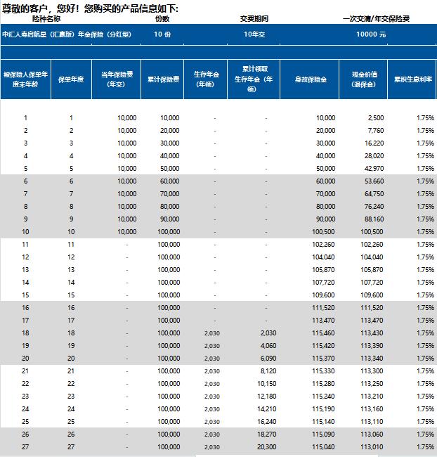 以下是对"中汇人寿启航星汇赢版年金保险分红型利益演示表.xlsx"的评论