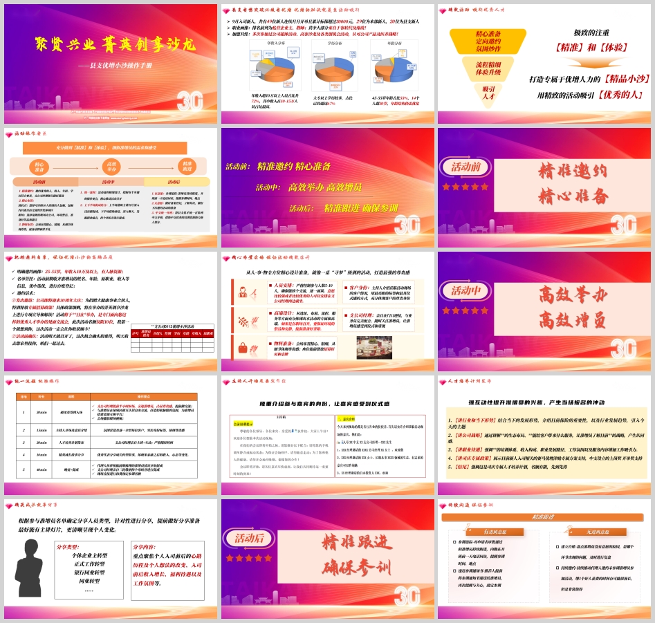 活动中的核心是统一流程、标准操作,通过精心设计的环节,让准增员在不知不觉中产生认同、做出选择。