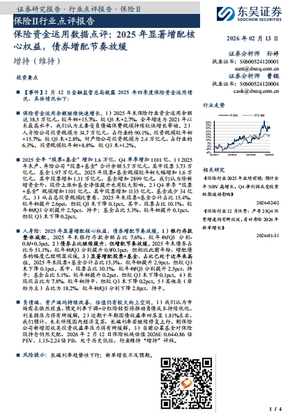 正如报告所述,保险市场需求依然旺盛,保费持续增长为投资端提供了源源不断的“活水”。与此同时,监管引导下的预定利率下调以及“分红险”等浮动收益型产品的转型,正在从源头上降低负债成本。负债端的优化,为资产端进行更大胆的配置调整提供了空间和缓冲。即便权益市场短期波动加大,但较低的负债成本和分红险“共担风险”的特性,使得保险公司能够以更从容的心态坚持长期投资,穿越周期。资产端通过增配权益有望提升长期收益,反过来又能支撑负债端的成本优化和新业务价值增长,形成良性循环。
