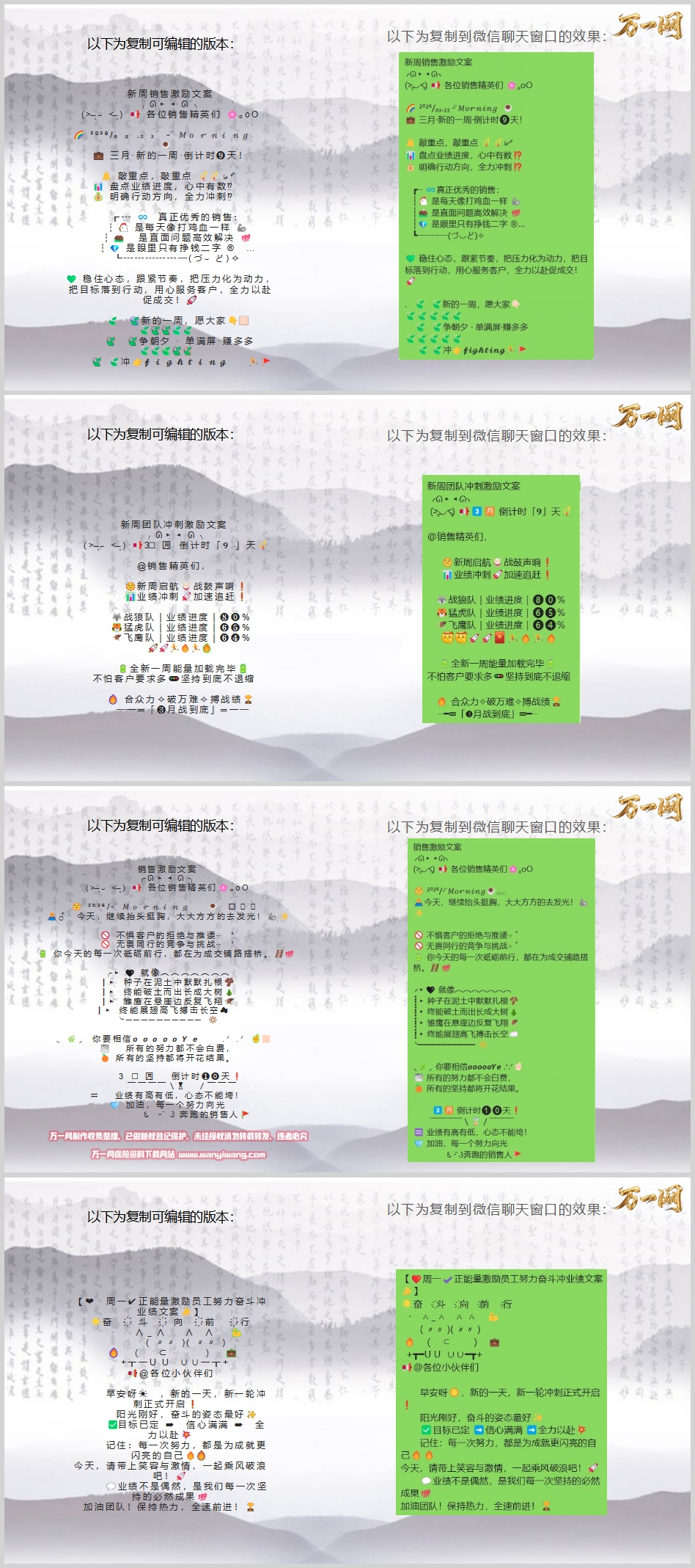 新周销售激励文案,各位销售精英们,三月·新的一周·倒计时9天!敲重点,敲重点,盘点业绩进度,心中有数,明确行动方向,全力冲刺,真正优秀的销售:是每天像打鸡血一样,是直面问题高效解决,是眼里只有挣钱二字,稳住心态,跟紧节奏,把压力化为动力,把目标落到行动,用心服务客户,全力以赴促成交!