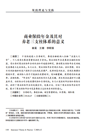 商业保险年金:内涵、外延及其对完善养老三支柱体系的意义