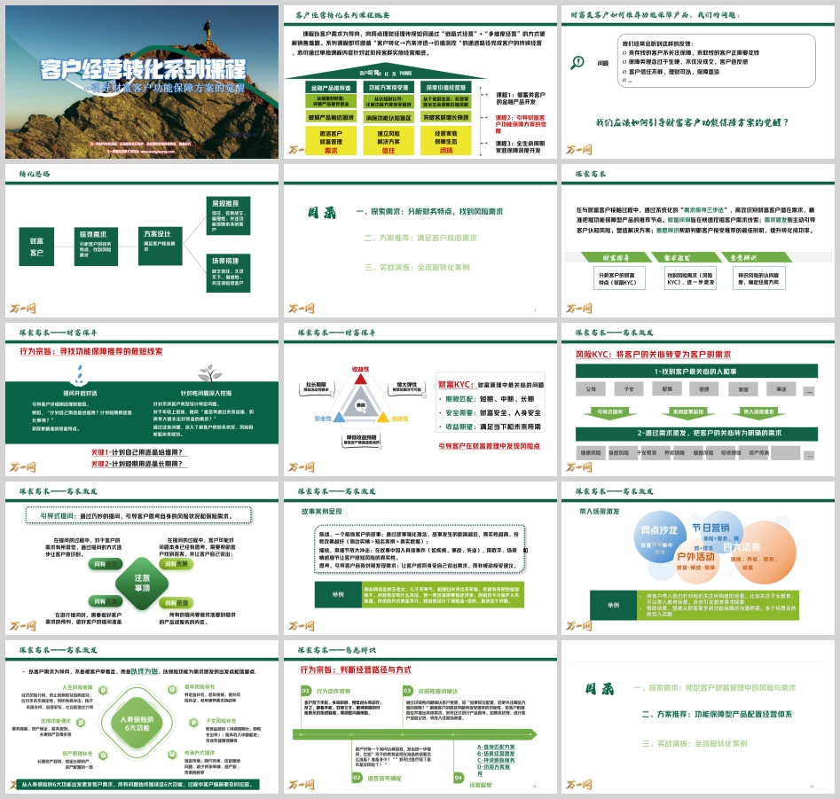 分对分产说会:以分/支行为单位,筛选80-120人认同保险、对养老感兴趣的高净值客户,组织大型产品说明会,集中促成。