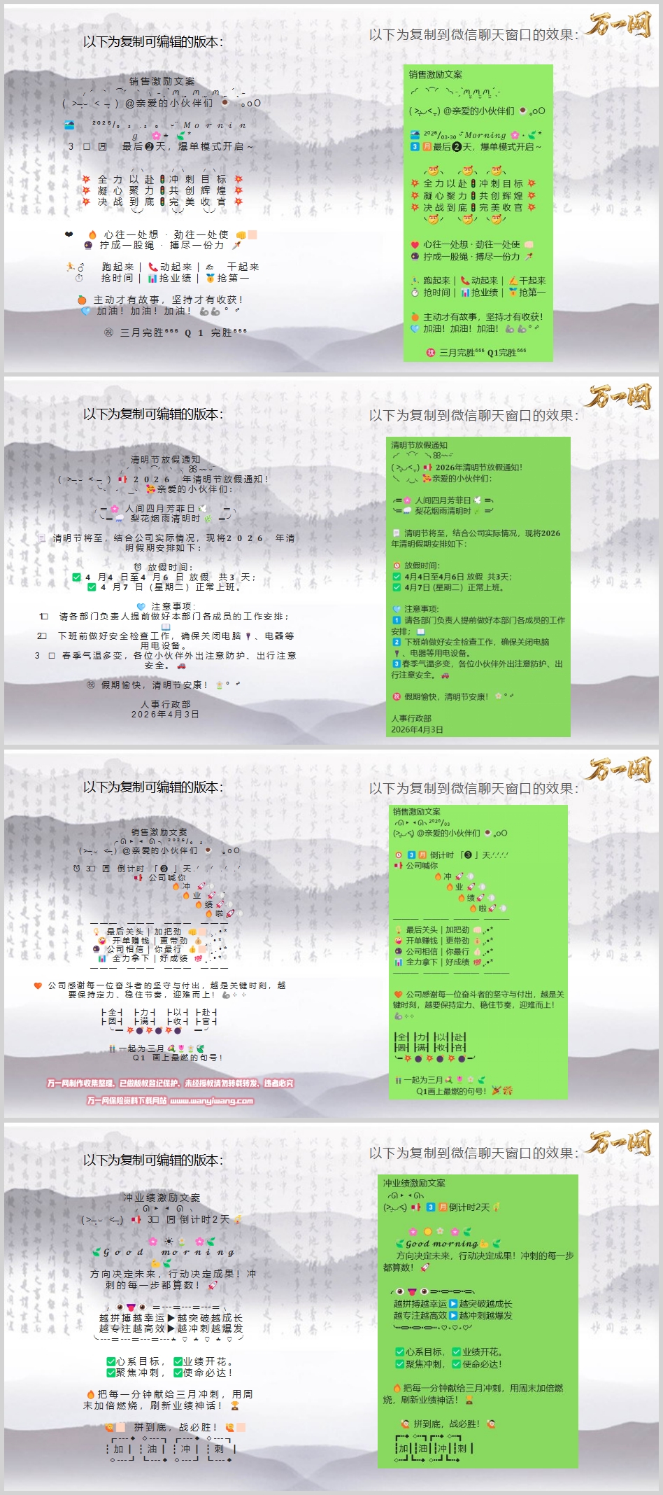 销售激励文案@亲爱的小伙伴们,3月最后2天,爆单模式开启~全 力 以 赴,冲 刺 目 标,凝 心 聚 力,共 创 辉 煌 , 决 战 到 底,完 美 收 官。心往一处想 · 劲往一处使,拧成一股绳 · 搏尽一份力,跑起来,动起来,干起来,抢时间,抢业绩,抢第一,主动才有故事,坚持才有收获!加油!加油!加油!
