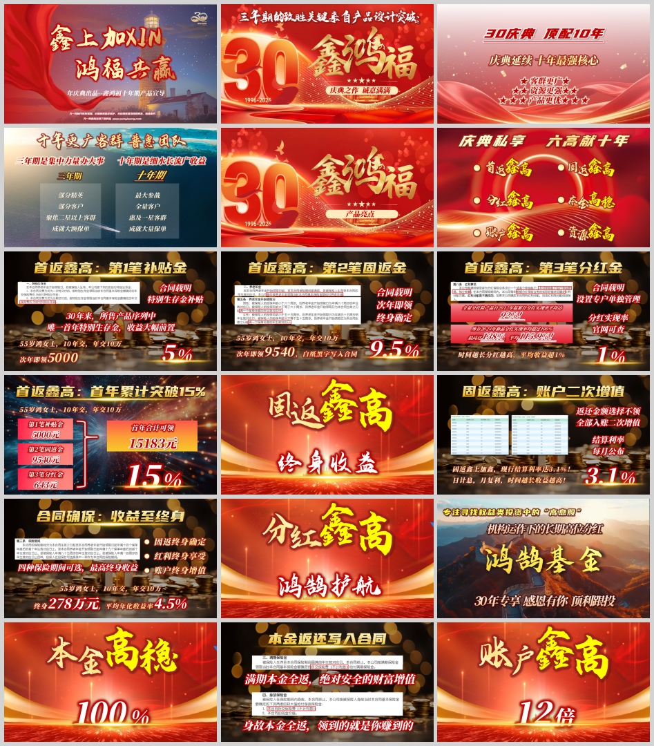 摘要: 值此中国人寿建院年庆之际,公司重磅推出“鑫鸿福十年期”年金保险产品,作为庆典系列的扛鼎之作。该产品以“客群更广、资源更强、产品更优”为核心设计理念,相较于以往成功的三年期产品,十年期鑫鸿福实现了从“集中力量办大事”到“细水长流广收益”的战略升维。