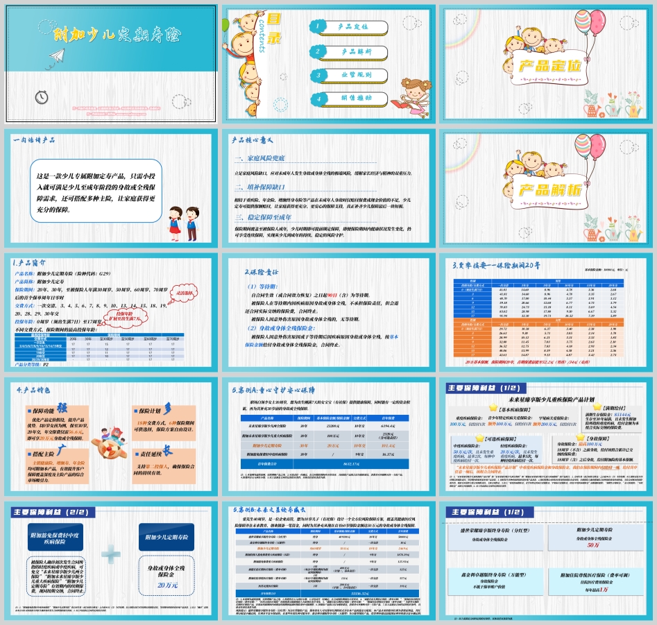 沟通话术:“李女士,您为宝宝配置的重疾保障已经非常全面了。但您知道吗?在宝宝18岁前,如果不幸发生极端风险,这份重疾险只能退回您交的保费。现在我们只需要每天多花不到3毛钱,附加一份少儿定寿,就能让宝宝拥有20万的身价保障,真正实现保障无死角。”