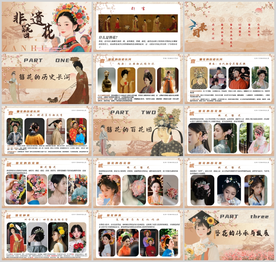 文化讲座 | 20分钟 | 特邀非遗传承人或文化讲师,讲解簪花历史、种类、时令花语及蟳埔女习俗。 | 配合PPT展示文物图片、簪花作品及蟳埔村实景照片。 |