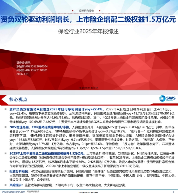 投资端弹性释放:2025年资本市场整体回暖,权益投资收益率显著提升,成为利润增长的核心引擎。