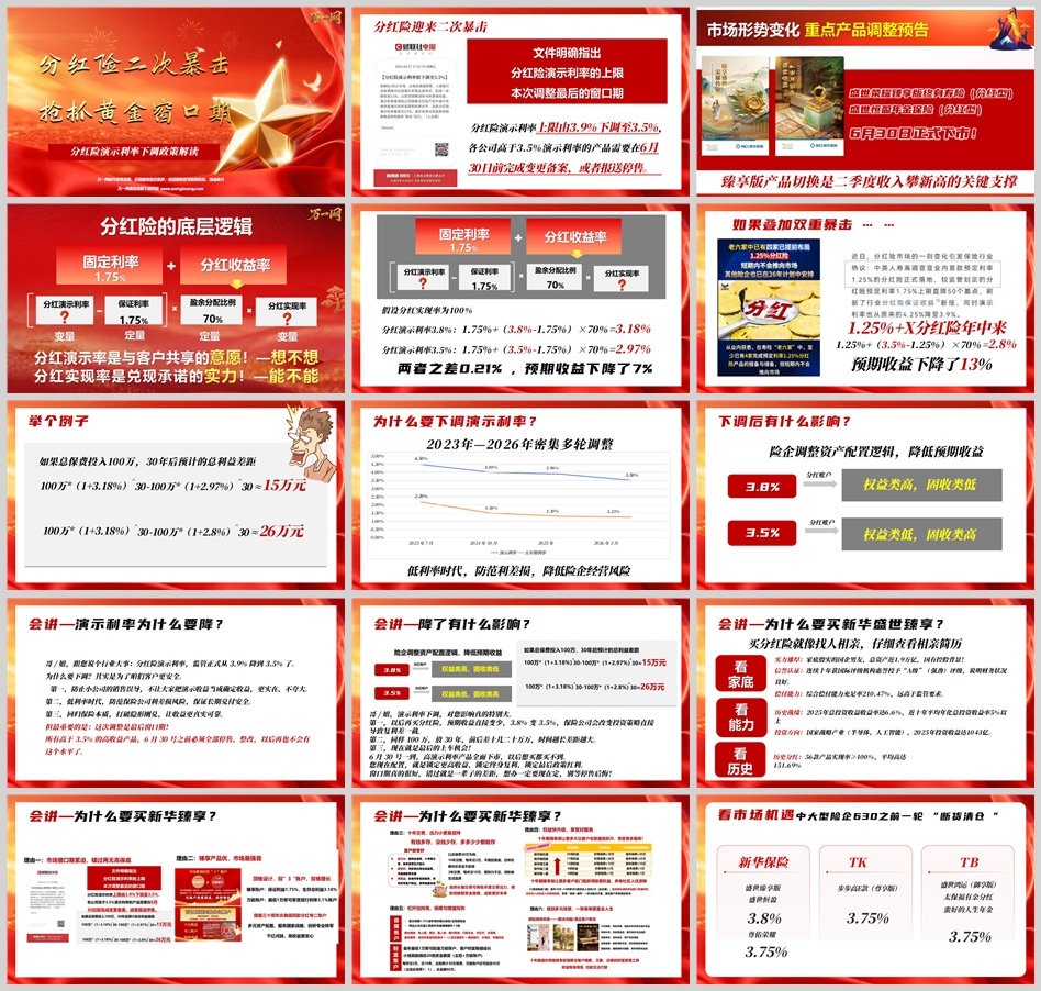 核心风险:必须明确告知客户,演示利率(3.5%/3.8%)非保证,实际收益取决于公司分红实现率。监管给出的2025年实际分红指导区间约为 3.2%,这才是更真实的参考值。