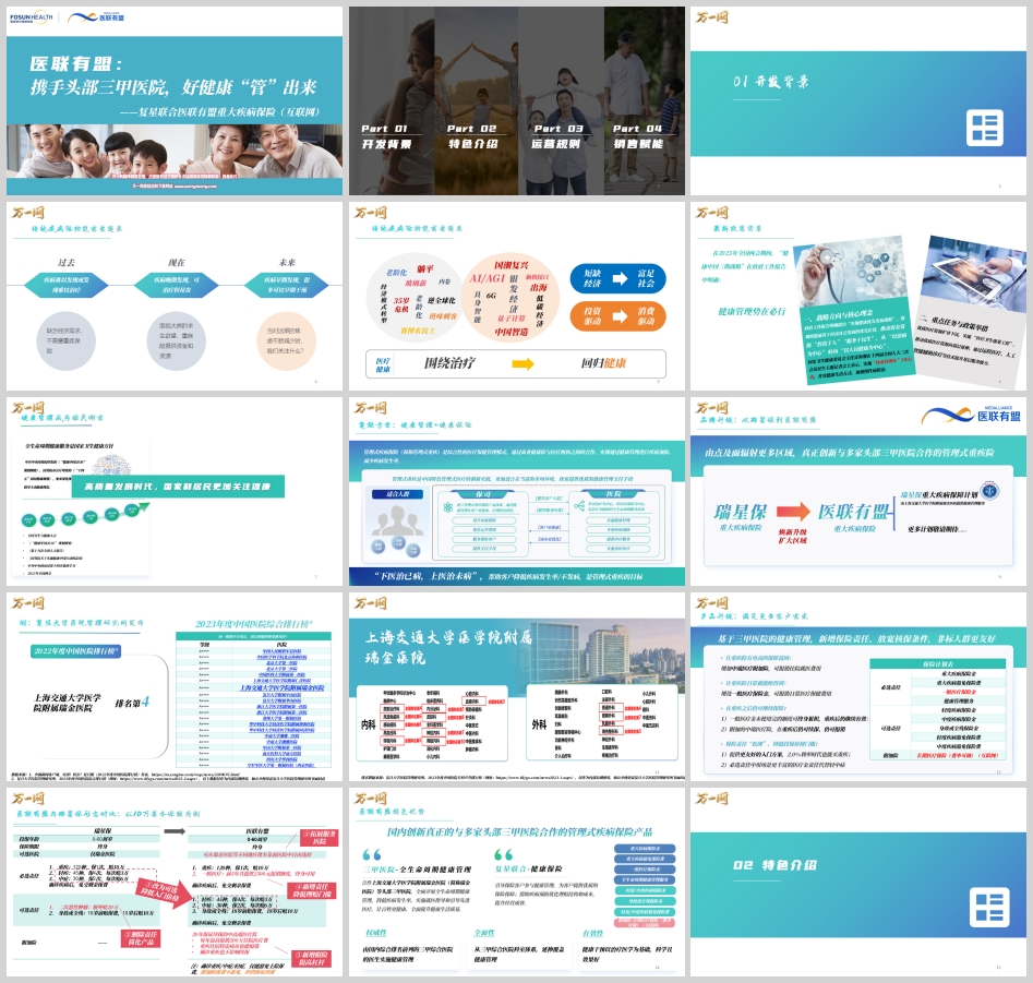 一是合作医院范围拓展。 从单一医院升级为多家头部三甲医院联盟,可根据客户地域分布和就医偏好提供灵活选择。瑞金医院作为核心合作伙伴,在复旦大学医院管理研究所发布的2023年度中国医院综合排行榜中位居A++++等级,其风湿科、心脑血管、检验医学、核医学、超声医学、急诊医学、重症医学等专科均位列全国前十。
