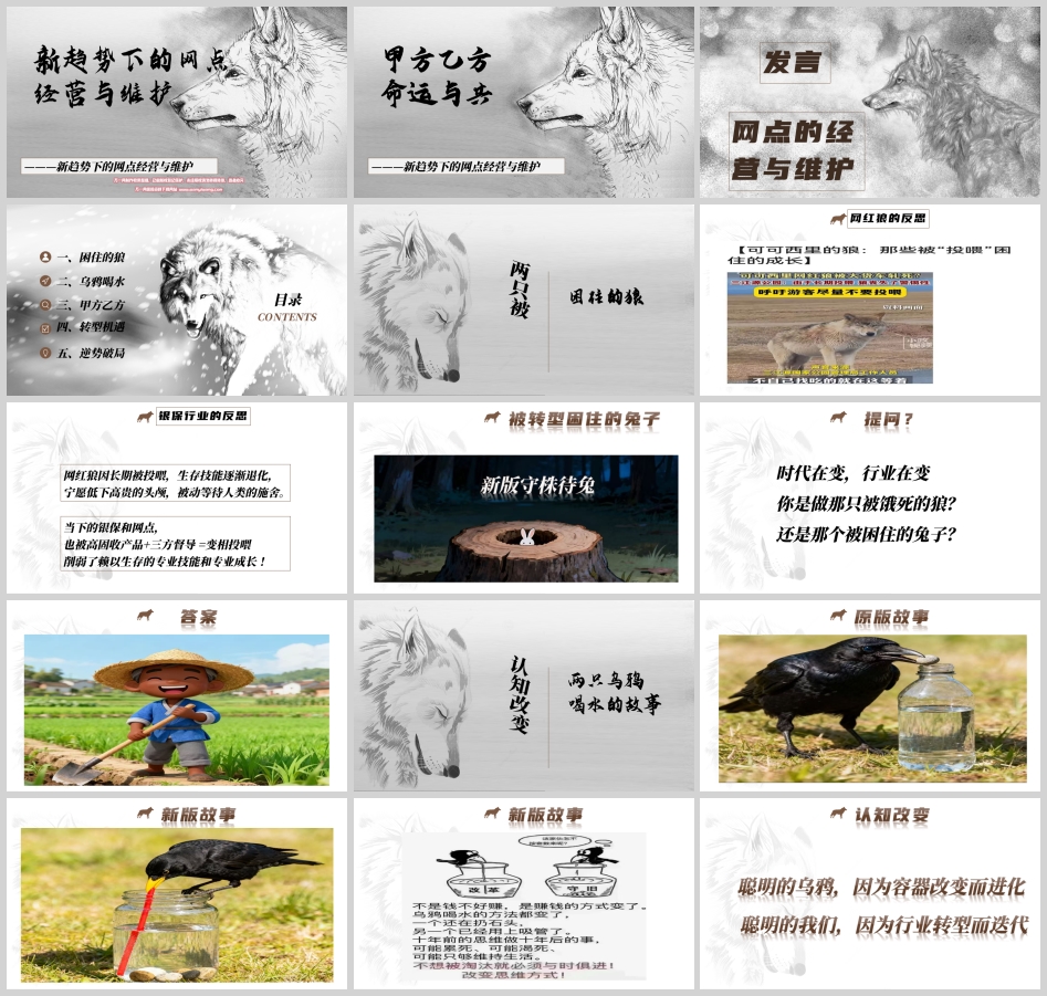 这不是一堂培训课,而是一场关于银保合作新思维的深度对话。我们将从“困住的狼”的反思开始,穿越“乌鸦喝水”的认知进化,重新定义“甲方乙方”的关系本质,最终找到逆势破局的钥匙——双痛点KYC。