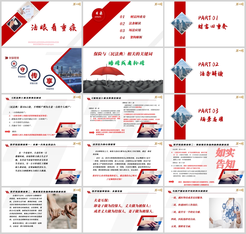 “万一网”提供的这套《法眼看重疾》培训材料,精准地捕捉到了当前保险营销的痛点与高点——即从法条解读入手,通过场景应用落地,最终落实到保单架构的设计。