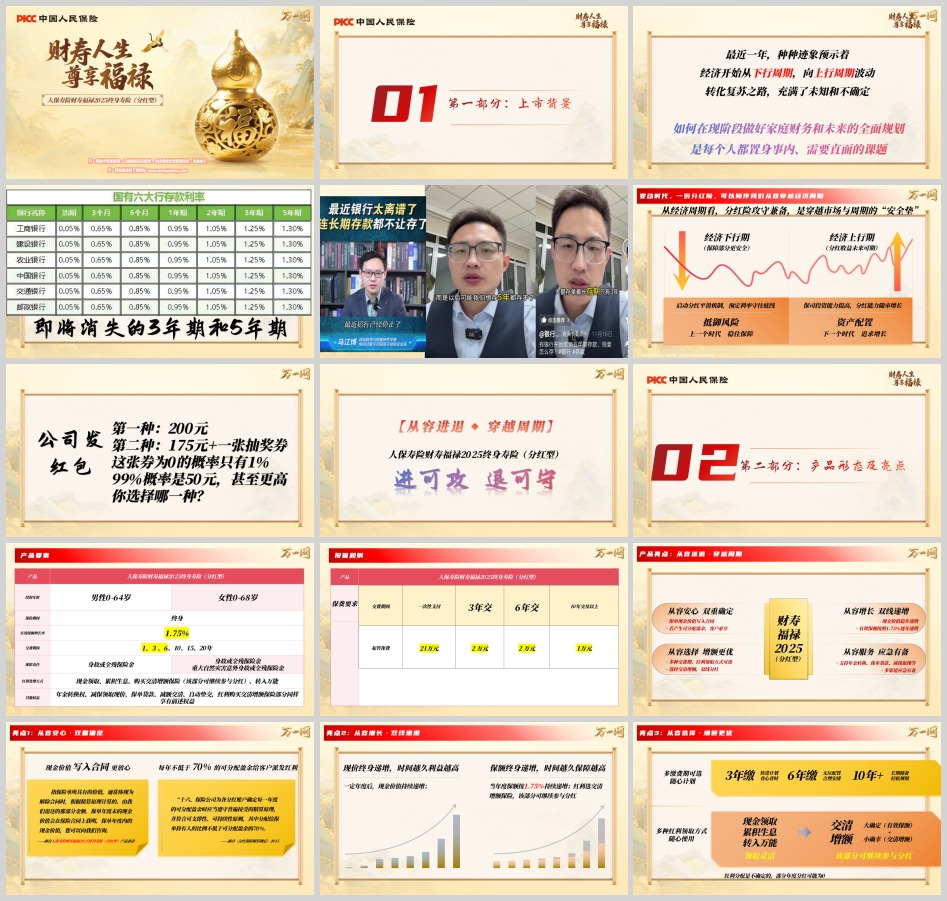 在当前宏观经济从下行周期向上行周期过渡的关键阶段,复苏之路充满未知与不确定性。如何在变动的经济环境中做好家庭财务与未来的全面规划,成为每个人都需要直面的课题。人保寿险顺势推出“财寿福禄2025终身寿险(分红型)”,以“进可攻、退可守”的产品定位,帮助客户从容穿越经济周期,实现财富的稳健增长与长期传承。