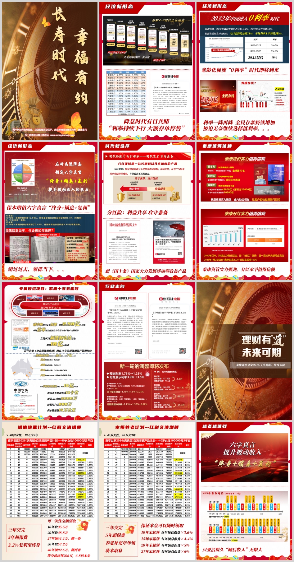 话术核心:强调“终身锁利”在降息时代的稀缺性,用“复利+时间”的奇迹打动客户。对比银行储蓄利率的单利和下行趋势。