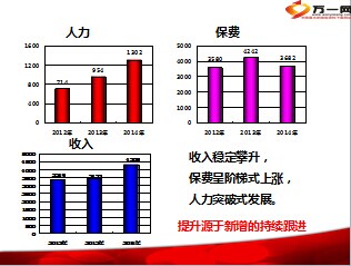 2013年10月14日加盟**,当月晋升正式营销员,当季晋升高级客户经理;第6个月(2014年3月)晋升业务主任,第9个月(2014年6月)晋升高级业务主任。每一次考核,对她而言都是一次晋升的机会!