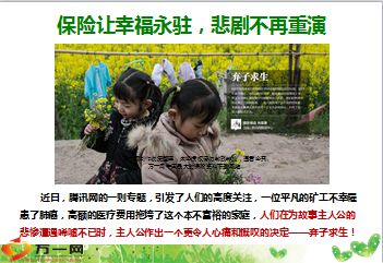 近日,腾讯网的一则专题,引发了人们的高度关注,一位平凡的矿工不幸罹患了肺癌,高额的医疗费用拖垮了这个本不富裕的家庭,人们在为故事主人公的悲惨遭遇唏嘘不已时,主人公作出一个更令人心痛和慨叹的决定——弃子求生!