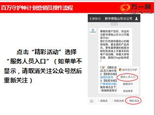 百万守护神计划百万守护神计划营销员操作流程点击左上方的三个小点,在下方选择“发送给朋友”或者“分享到朋友圈”百万守护神计划营销员操作入服务人员入口登陆后点击“查看”即可查看自己目前客户的点赞和中奖情况百万守护神计划营销员查看数据方式。