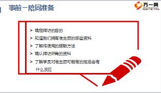 了解将使用的接触方法,确认拜访所需的资料,了解学员对准主顾可能有的拒绝会有什么反应。