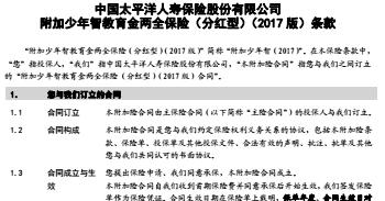 太平洋人寿附加少年智教育金两全保险2017版条款产品说明书
