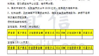 业务报送要求,1、合同签订:合同签订日期应在划扣日期之前,拒绝划扣当天签订合同,以免由此造成债权浪费;2、报送信息:包括客户姓名、投资金额、日期、出借方式、cca/crm(填写与系统显示一致)等信息,务必保证报送信息正确,以免由于不能修改信息造成债权浪费;3、报送时间:各 branch 务必在划扣日期前一个工作日的下午17:00 之前报送划扣明细,否则额度将予以收回,进行再分配;4、系统申请时间:划扣当天的上午 10:30 之前,在系统内准确申请。