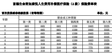 富德生命附加康悦人生费用补偿医疗保险A款费率表4页.