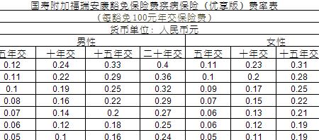 国寿附加福瑞安康豁免保险费疾病保险优享版费率表1页.