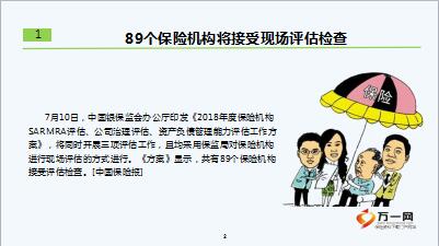 7月10日,中国银保监会办公厅印发《2018年度保险机构SARMRA评估、公司治理评估、资产负债管理能力评估工作方案》,将同时开展三项评估工作,且均采用保监局对保险机构进行现场评估的方式进行。《方案》显示,共有89个保险机构接受评估检查。[中国保险报]