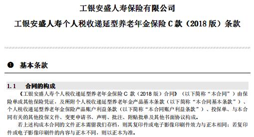 工银安盛个人税收递延型养老年金保险C款2018版条款养老领取表