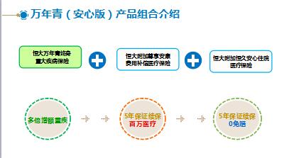 特色五 保证续保时间最长,5年保证续保写进合同,续保期间,不限制病种、不限制住院次数,无间隔期要求,万年青(安心版)——七大特色之六