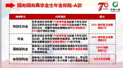 F:这是一款为迎接国庆司庆70周年而特别推出的纪念版普惠金融产品A:它可以通过短短三年的投入为您规划一生的幸福!B:对您来说,年投10万、仅需3年就可获利终生。5年后连续返还两笔特别生存金合计10万;7年后开始每年领取2.4万,合计领取8次共19.2万;15年后满期领取保险金额81150元!总计固定收益37.3万,不受经济波动、不受政策影响!返还的全部收益还将进入庆典版鑫尊宝账户享受年化5.3复利账户的二次增值!第15年总收益超50万!60岁退休前总收益将突破100万!E:您看!年投10万即可轻松拥有百万人生,您还犹豫什么?您的好朋友张先生已经预约了20万,您预约20万还是30万?