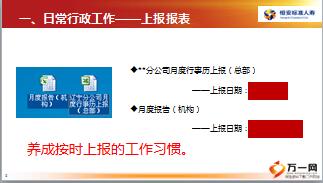 日常上报工作及新人育成KPI介绍,1、需上报机构所有开办的培训班:包括新人育成AB、新人育成C、主管养成、主管研修或其他非制式培训(需备注说明),2、培训班在月底举办,上报报表时未结训的班级,结训人数标注预估人数(备注预估),日常行政工作——上报报表,月度报告(机构),月度报告填写指南查询路径,P:\ID\**分公司培训部\培训负责人工作相关\例会\20190214。
