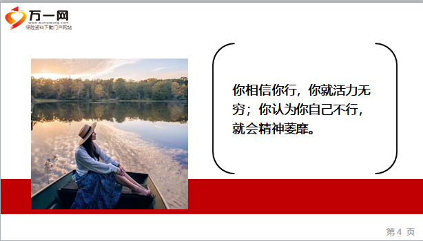 一生中你唯一需要回头的时候,是为了看自己到底走了多远。一旦立下目标,不达目标绝不罢手,方可成功。你相信你行,你就活力无穷;你认为你自己不行,就会精神萎靡。人生的路,说长也很长,说短也很短。偶遇不幸或挫败只能证明某一时候某一方面的不足或做得不够。当你的才华还撑不起你的野心时,那你就应该静下心来学习。乐观的人能重整旗鼓东山再起,悲观的人因缺乏自信,往往一败涂地。目标和信念给人以持久的动力,它是人的精神支柱。成功的秘诀在于坚持自已的目标和信念。生活中的许多事,并不是我们不能做到,而是我们不相信能够做到。