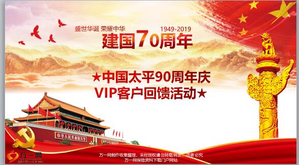 2019年,是中华人民共和国70周年华诞。70年披荆斩棘,70年风雨兼程。人民是共和国的坚实根基,人民是党执政的最大底气。一路走来,中国人民自力更生、艰苦奋斗,创造了举世瞩目的中国奇迹,聚焦太平90周年成绩,央企身份,500强水准,总保费超过1600亿元,总资产突破6000亿元,管理资产规模突破10000亿元,60余万名内外勤员工,24家子公司,2000余家各级营业机构,第451位,较2018年排名,提升14位,2000年,中国太平保险控股有限公司(HK00966)在香港上市,是首家在境外上市的中资保险企业,2015年6月,与全球知名金融机构美国史带集团合资设立的太平史带控股有限责任公司在美国成功注册开业,2015年12月,中国太平人寿保险(香港)有限公司开业,开启中国太平境外寿险业务崭新篇章,2016年2月,太平再保险(中国)有限公司正式开业,成为境内第二家具有再保险独立法人牌照的中资再保险公司,2018年1月,太平科技获批开业,成为我国首家科技保险公司,2018年7月,中国太平澳大利亚代表处获批成立,2018年8月,太平新加坡获准经营寿险业务,2019年6月16日,中国太平人寿保险(澳门)股份有限公司宣布正式开业。
