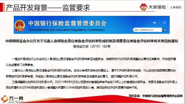 产品开发背景——监管要求,一是由中国保险行业协会设立人身保险业责任准备金评估利率专家咨询委员会,定期研究讨论评估利率调整的必要性及其影响,形成相关建议供监管部门决策参考。二是优化人身保险业责任准备金评估利率形成机制。在充分考虑负债特点的基础上,基于对市场利率未来走势、行业投资收益率等因素的判断确定评估利率参考值,并结合人身保险业责任准备金评估利率专家咨询委员会的意见,适时调整评估利率水平。三是调整部分险种的评估利率水平。对2013年8月5日及以后签发的普通型养老年金或10年以上的普通型长期年金,将责任准备金评估利率上限由年复利4.025%和预定利率的小者调整为年复利3.5%和预定利率的小者,其他险种的评估利率要求维持不变。中国银保监会办公厅关于完善人身保险业责任准备金评估利率形成机制及调整责任准备金评估利率有关事项的通知,中国新中产的焦虑:“子女教育”是新中产人群最普遍的焦虑,资料来源:胡润研究院发布《2018中国新中产圈层白皮书》