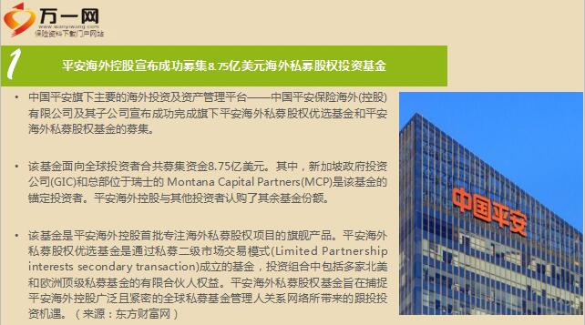 中国平安旗下主要的海外投资及资产管理平台——中国平安保险海外(控股)有限公司及其子公司宣布成功完成旗下平安海外私募股权优选基金和平安海外私募股权基金的募集。